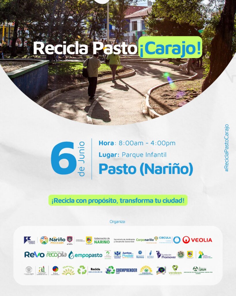 Todo esto bajo el lema #ReciclaPastoCarajo, fomentando la educación, la economía circular y la recreación.